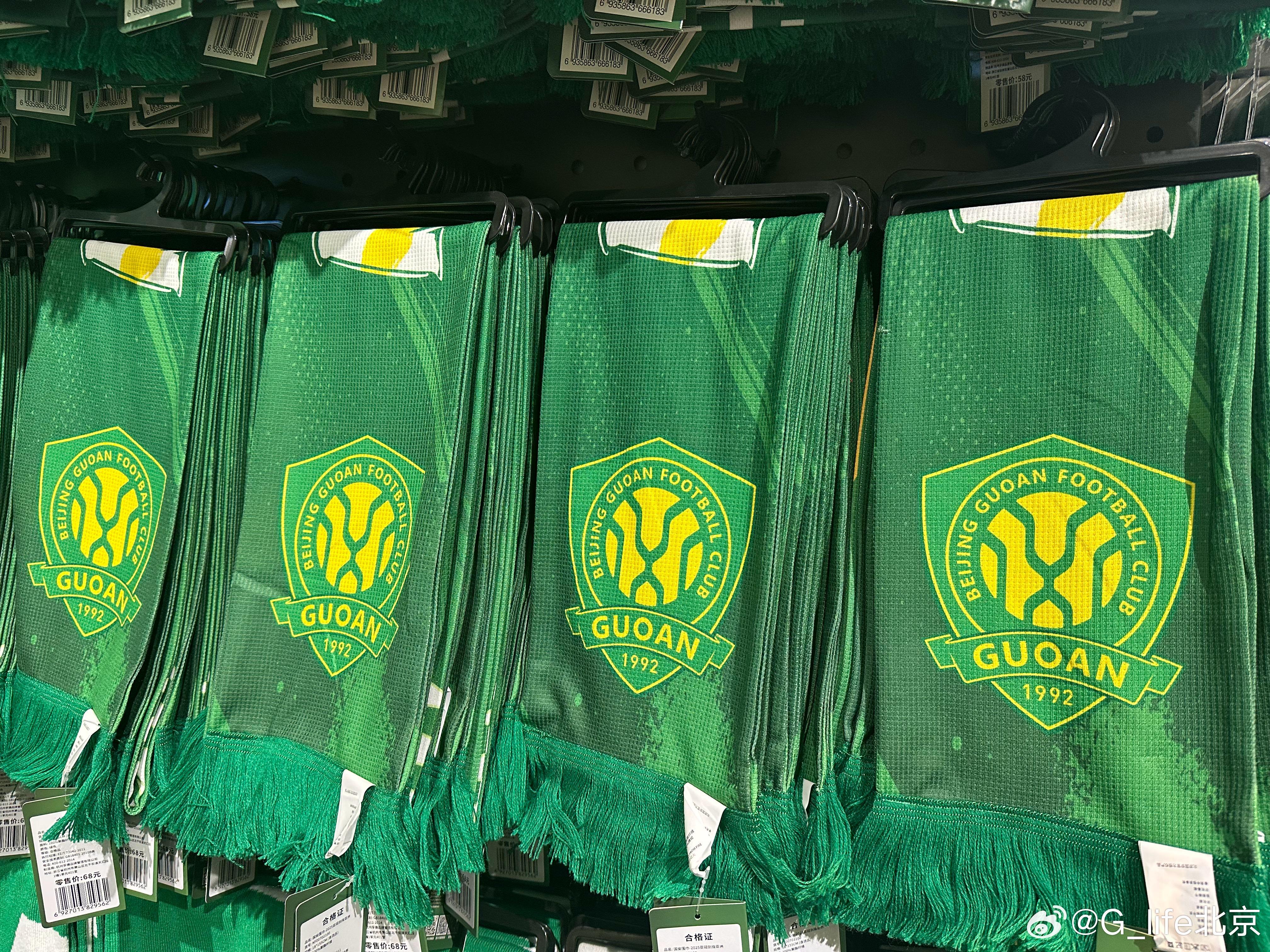 北京时间9月6日,据博主“G_life北京”消息,北京国安将推出亚冠特别版围巾,上方印着“剑指亚洲”。